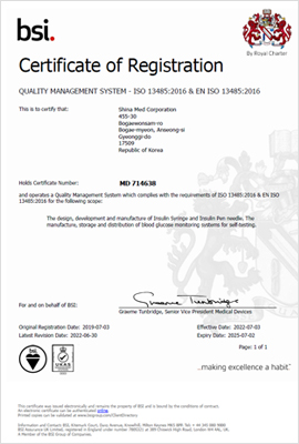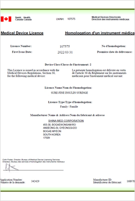 · Acquired KFDA License for manufactured Insulin Syringe products(Export)