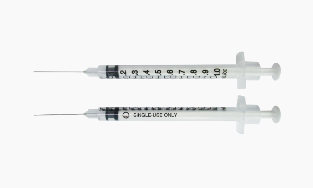 | 1.0mL 23G or 25G X 1” (25.4mm) |